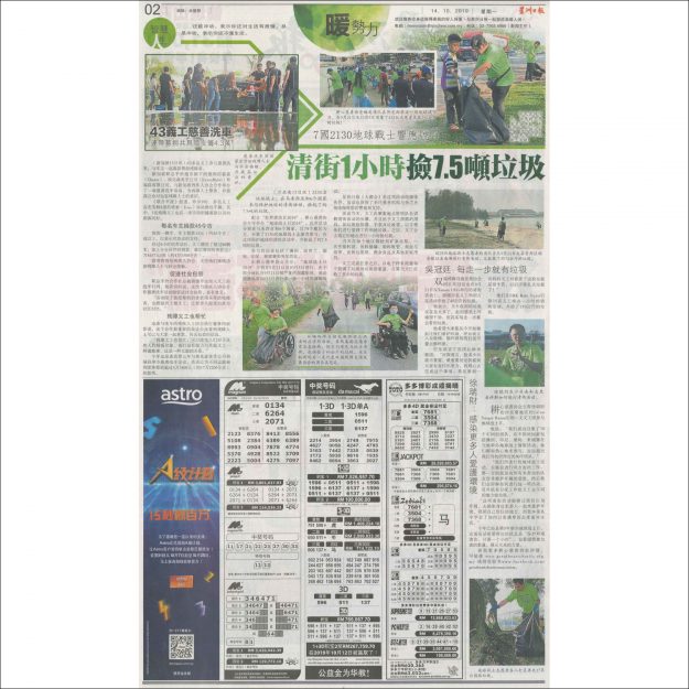 (星洲日报)7国2130地球战士响应号召,清街1小时 捡7.5吨垃圾