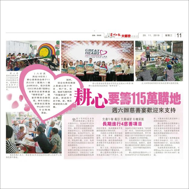 耕心要筹115万购地,周六办慈善宴欢迎来支持