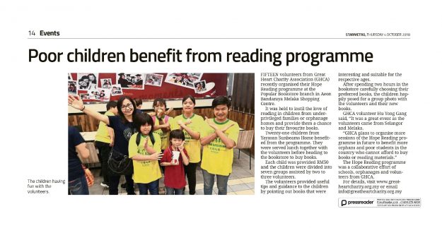 (The Star) – Poor children benefit from reading programmeThe StarBy Shivasangari Sanasi04/10/2018Leave a comment