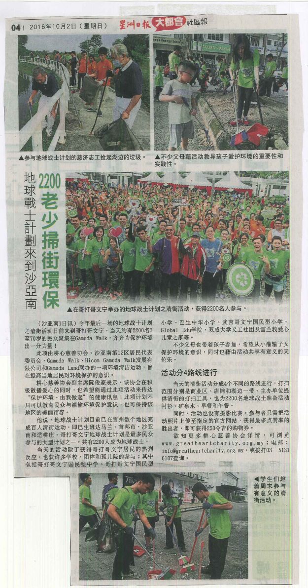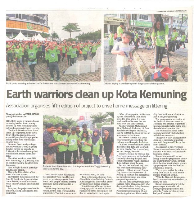 (The Star) Earth warriors clean up Kota KemuningThe StarBy Shivasangari Sanasi08/10/2016Leave a comment