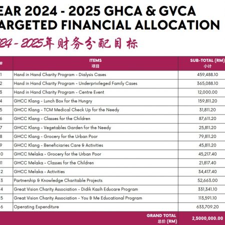 This year marks the 10th anniversary of Great Heart Charity Association. I would like to support the association’s mission in raising fund to support the charity programs in the year 2024-2025. We are on a mission to support the 6 caring targets, underprivileged families, dialysis patients, charity homes, orang Asli community & B40 students in their education pursuits.