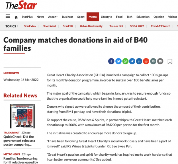 (The Star) Company matches donations in aid of B40 familiesThe StarBy Syafiqah Hanif16/03/2022Leave a comment