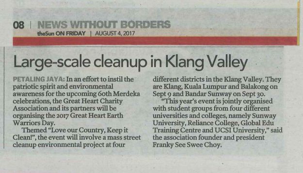 (The Sun Daily) Large-Scale cleanup in Klang ValleyUncategorisedBy Shivasangari Sanasi04/08/2017Leave a comment