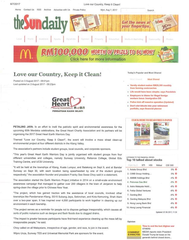 (The Sun Daily) Love our Country, keep it cleanUncategorisedBy Shivasangari Sanasi07/08/2017Leave a comment