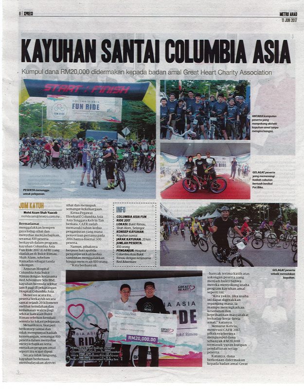(Harian Metro) Kayuhan Santai Columbia AsiaUncategorisedBy Shivasangari Sanasi11/06/2017Leave a comment
