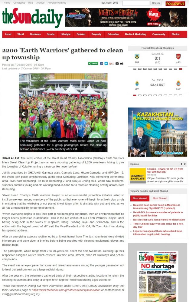 (The Sun Daily) 2200 ‘Earth Warriors’ gathered to clean up townshipUncategorisedBy Shivasangari Sanasi08/10/2016Leave a comment