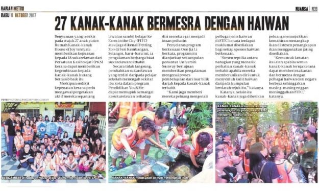 (Harian Metro) – 27 Kanak Kanak Bermesra Dengan HaiwanUncategorisedBy Shivasangari Sanasi11/10/2017Leave a comment