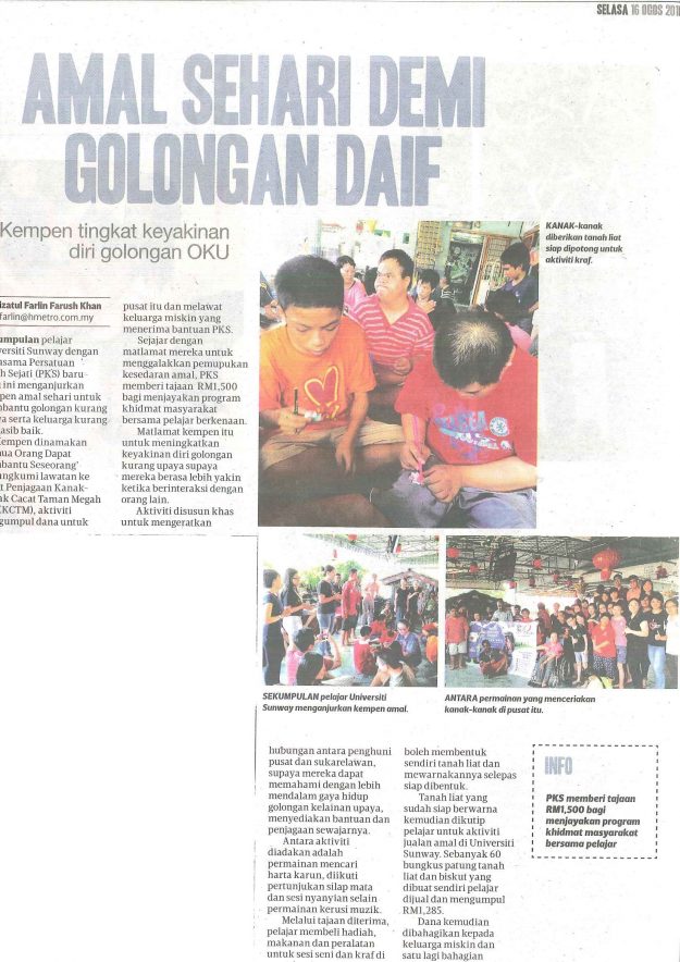 (Harian Metro) -Amal sehari demi golongan daifUncategorisedBy Shivasangari Sanasi16/08/2016Leave a comment
