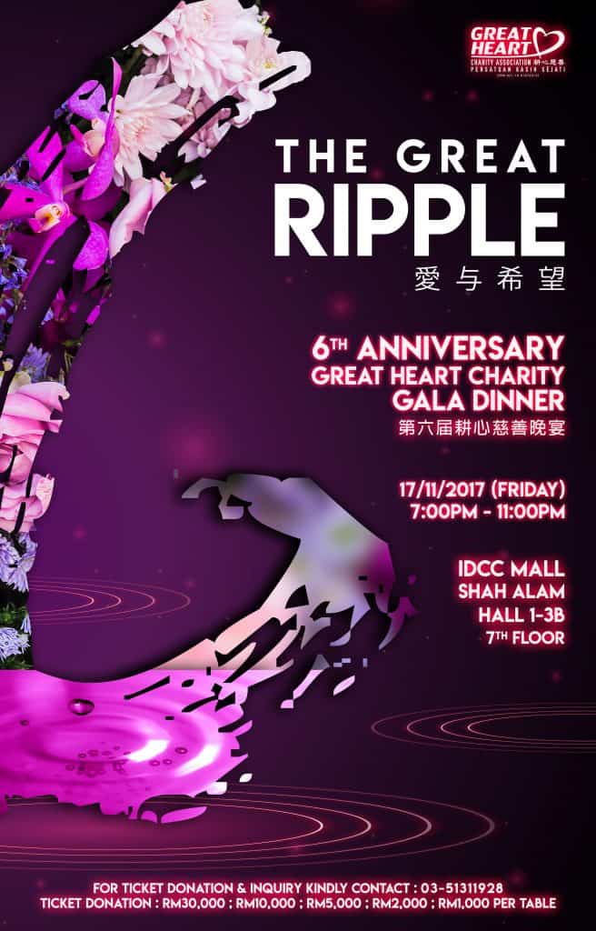 GREAT HEART CHARITY 6TH ANNIVERSARY CHARITY GALA DINNER – THE GREAT RIPPLE