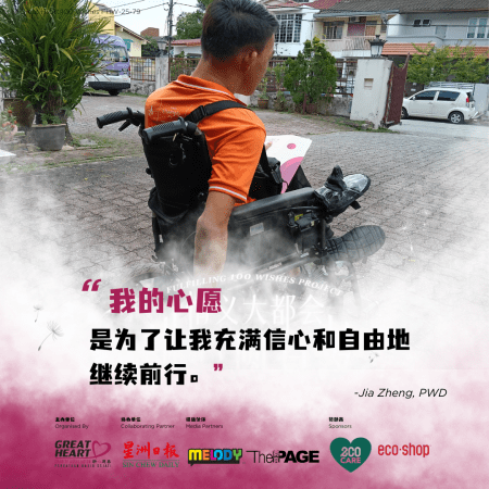 请支持 Kok Jia Zheng,帮他换上一颗新电池,继续维持他的工作、自理能力和独立生活的尊严。