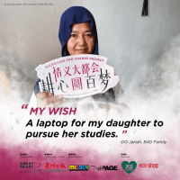 作为一位母亲,Puan DG Jariah 最大的心愿,就是能够为正在修读 TESL 的女儿争取到一台笔记型电脑。