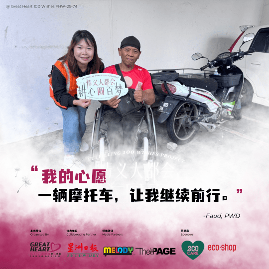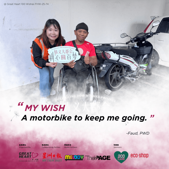 His wish is a simple one: a new, safe motorbike that can support his mobility and livelihood. For Encik Fuad, it’s more than transport it’s his way to keep going with dignity, without burdening others.