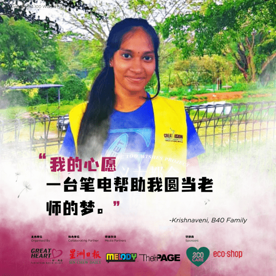 为了完成学业和教学实习,Krishnaveni 迫切需要一台笔记型电脑。她目前的设备无法应付学术报告、在线教学准备及资料搜集,让她在学习的道路上步履维艰。