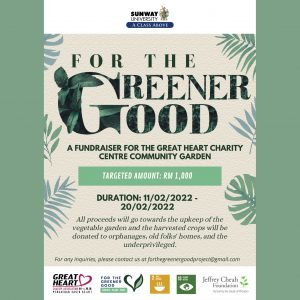 For The Greener Good is an online fundraising campaign held by a group of Sunway University Psychology students aiming to sustainably lighten the burden of those facing food insecurity.