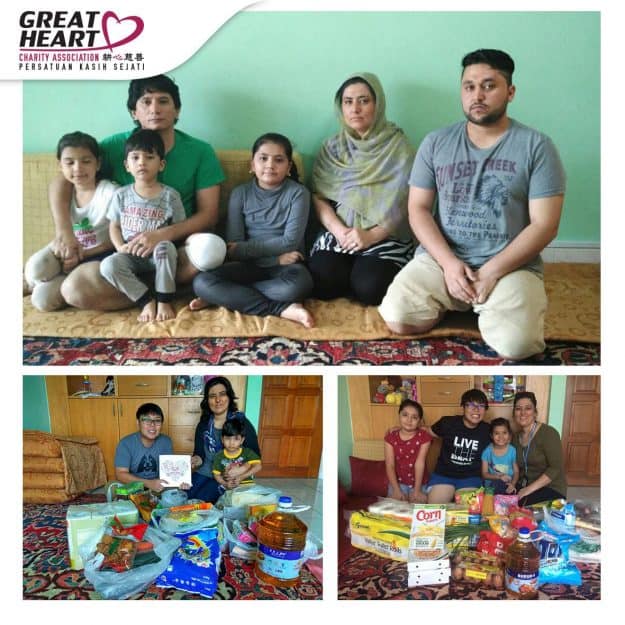 Mr. Jawed Gul Ahmad families are the refugees that comes to Malaysia for peace and safety. They are forced to leave their home and work in Malaysia, he and his brother-in-law needed to suport his whole family by working as the part-time waiter in the restaurant with the salary of Rm2000 combined. Great Heart Charity will be helping Jawed family of grocery support of Rm300 monthly for six month. However, they hoped the more people can donate to Great Heart in order to support them for longer period so the children will never starve again.