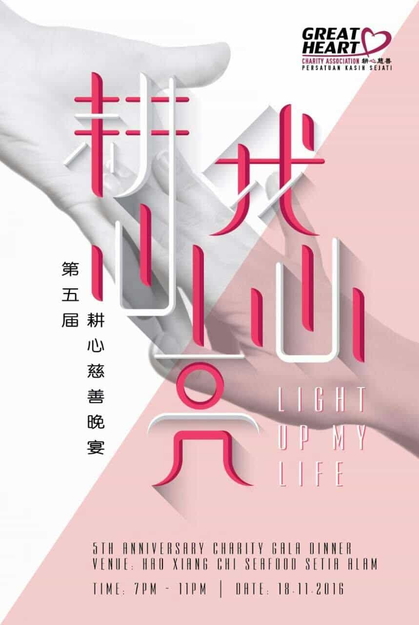 Great Heart Charity Association will hold its 5th Charity Gala dinner on November 18, 2016 to raise funds and awareness for our charity programs that help the underprivileged community. Support us, be one of our sponsors for our target of 120 tables and another 11 tables for the families under our monthly support program and welfare homes.